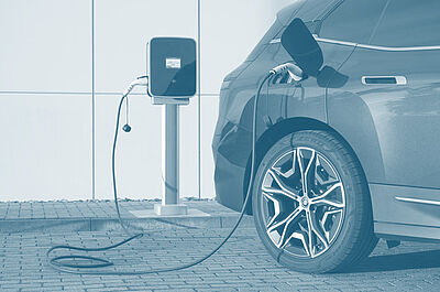 An electric car is usually charged via a charging point that is connected to a power source. There are also wall charging stations, known as wallboxes, which are usually installed on private property, for example on a garage wall.