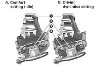 A: In the comfort position, the valve (2) is open and, as a result, permits the motion of the air suspension (3). The result is a soft range of spring (1).