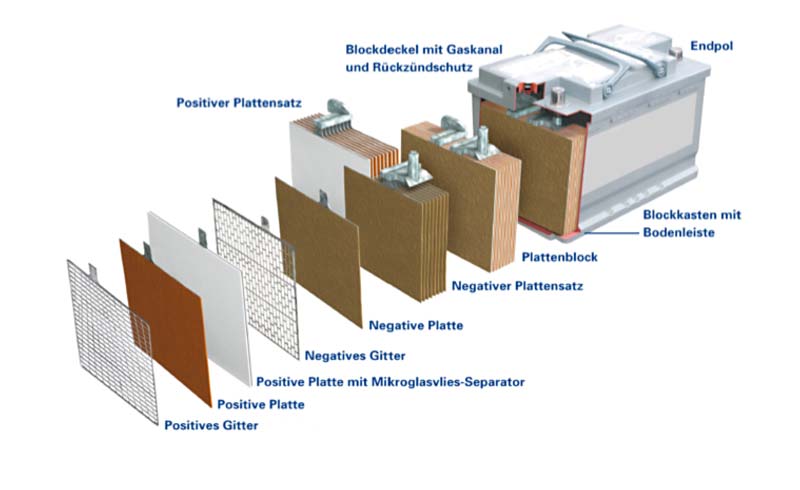 Vor diesem Hintergrund sind moderne AGM-Batterien (Absorbent Glass Mat) deutlich im Vorteil. Der Elektrolyt wird hier in einem absorptionsfähigen Glasfließ gebunden. Diese Technologie lässt keine Säureschichtung zu und sichert eine sehr hohe Rüttel- und Zyklenfestigkeit bei maximaler Leistung.