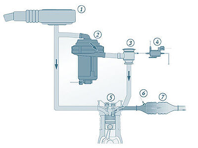 To avoid this and reduce harmful substances during cold starting, ambient air containing high levels of oxygen ("secondary air") is injected into the exhaust gas manifold directly downstream of the exhaust valves using the secondary air system. This causes post-oxidation ("post-combustion") of the harmful substances, creating harmless carbon dioxide and water. The heat generated as a result of this process also heats the catalytic converter and reduces the time taken for the oxygen sensor emissions control to commence operation. The secondary air system comprises the secondary air pump and the secondary air valves.
