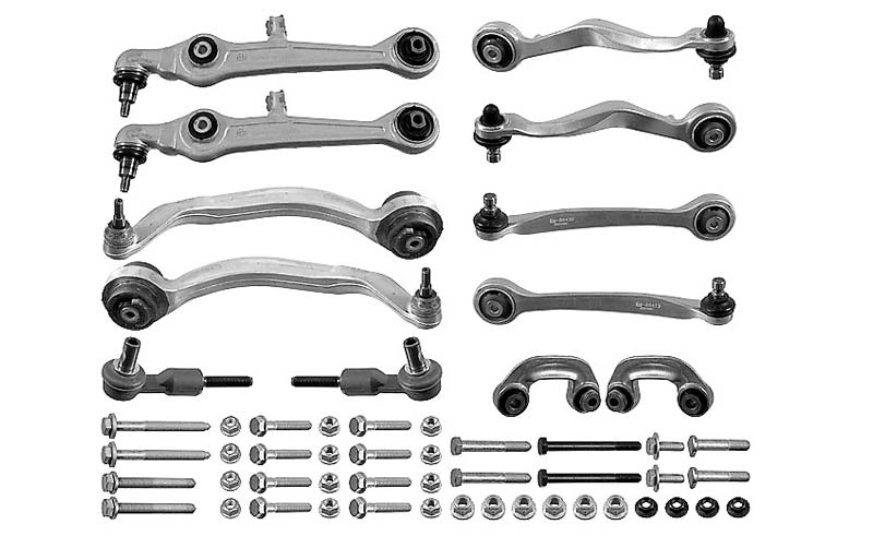 Steering parts are often made from a combination of rubber and metal. Wear occurs where these materials are susceptible: rubber ages, it becomes porous and can tear. Metal is susceptible to corrosion and can bend out of shape. During regular service and maintenance, bearing bushings and ball heads undergo visual inspection. Torn sleeves, knocked-out ball heads and ball joints must be replaced immediately. Damaged or misshapen wishbones, track rods and stabilising connecting rods must also be replaced, and shock absorbers must be checked for tightness and function. The tread wear pattern of the tyres and good directional stability of the vehicle often provide a very accurate picture of the accuracy of the axle geometry.